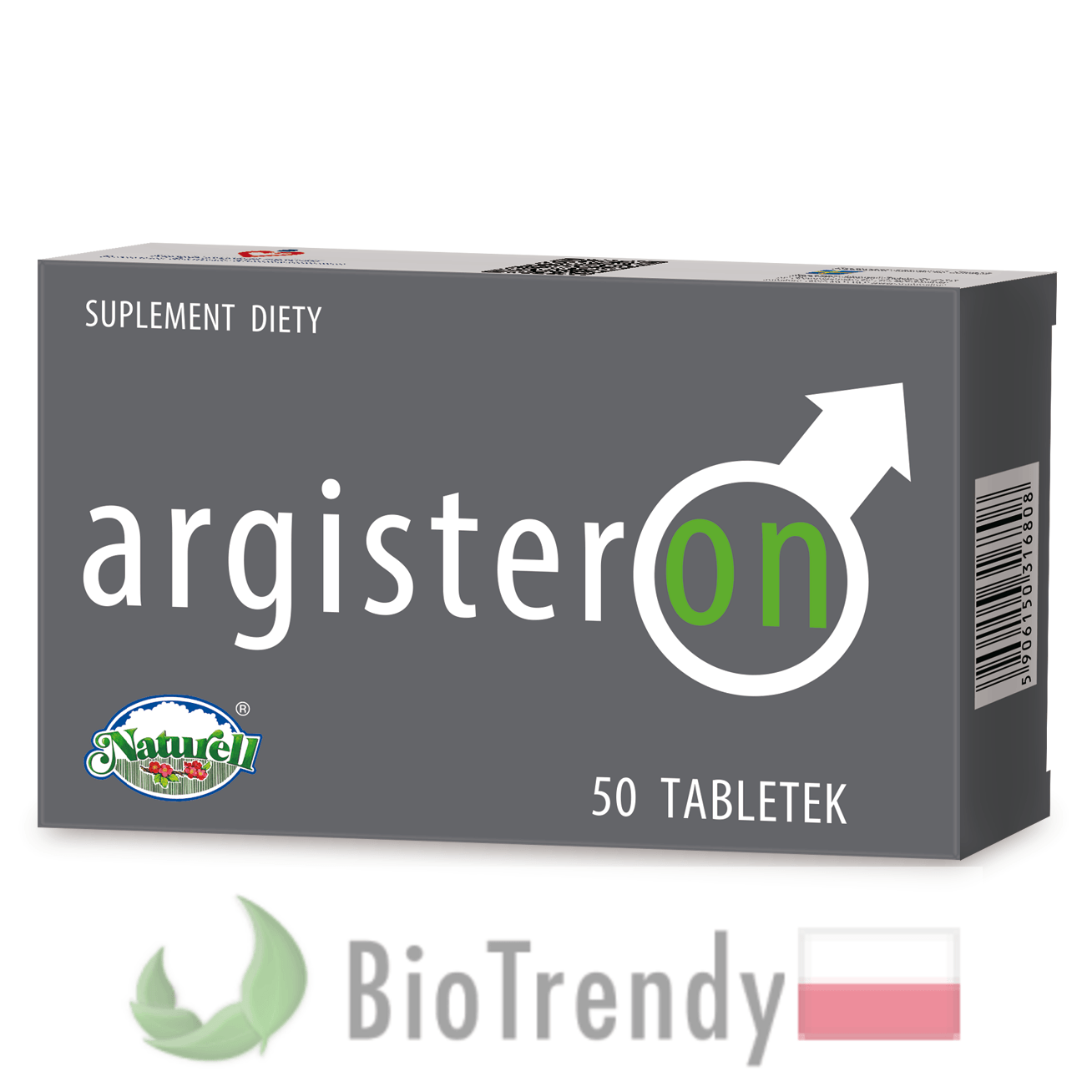 Argisteron to suplement diety w postaci tabletek, który oparty jest wyłącznie o naturalne składniki odżywcze, takie jak: Buzdyganek naziemny (Tribulus terrestris), Witamina B6 (PN: Pirydoksyna), Witamina B9 (Kwas foliowy: Acidum folicum), Witamina E (α-Tokoferole), Cynk (Zn: Zincum) oraz Magnez (Mg: Magnesium).