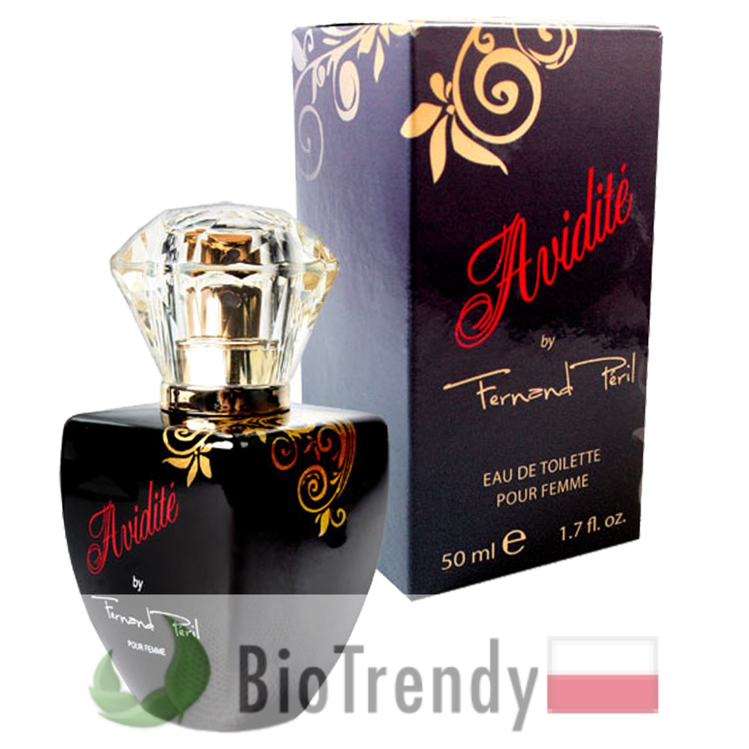 Avidite to nowa, zmysłowa kompozycja z feromonami dla kobiet, stworzona przez markę Fernand Peril. Została starannie skomponowana z myślą o wywołaniu pożądania u mężczyzn, jednocześnie podkreślając atrakcyjność i pociągający charakter noszącej ją osoby. Precyzyjnie dobrany zestaw składników działa pobudzająco na mężczyzn, sprawiając, że stają się oni bardziej zainteresowani. Perfumy te nadają się do stosowania na co dzień, jak i w szczególnych okolicznościach. Avidite to harmonia erotycznych nut, składająca się z czterech różnych, aktywnych aspektów zapachowych. Bazują one na gorzkich migdałach i kminie, uzupełnionych bardziej wyrafinowanym zapachem jaśminu Sambac. Wspaniale komponuje się także elegancki i tajemniczy aromat mchu oraz drzewa Jacaranda, a także czarujący, zmysłowy zapach wanilii i piżma.