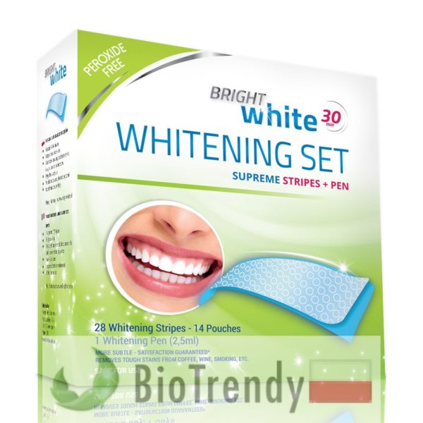 Bright White Whitening Set Supreme Peroxide Free Stripes + Pen – wybielanie zębów