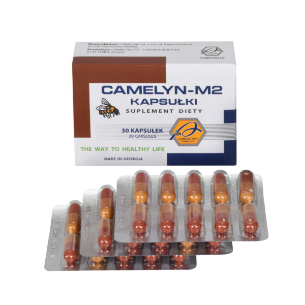 Camelyn M2 dzięki zawartym w kapsułce składnikom, pozytywnie wpływa na tworzenie odporności i reakcje limfocytów T. Badania potwierdziły, że produkt Camelyn M2 wykazuje działanie wspierające organizmu, a także zdolność organizmu do regeneracji stawów oraz skóry. Suplement bogaty jest w aktywne biologicznie substancje pochodzenia pszczelego: aldehydy, kwasy organiczne, ketony i polifenole znane z przeciwgrzybiczych i przeciwbakteryjnych właściwości.