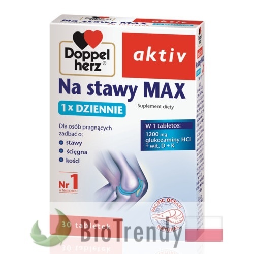 Aktualna cena Doppelherz aktiv Na stawy Max to: 30.00 PLN za opakowanie 30 tabletek.