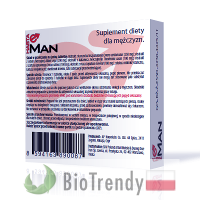 Hasta Man to suplement diety w postaci tabletek, który oparty jest wyłącznie o naturalne składniki odżywcze, takie jak: Karczoch hiszpański (Karczoch ostowy: Cynara cardunculus), Cebula zwyczajna (Cebula jadalna: Allium cepa), Kakaowiec właściwy (Theobroma cacao), Szafran uprawny (Krokus uprawny: Crocus sativus) oraz Pieprzyca peruwiańska (Maca: Lepidium meyenii).