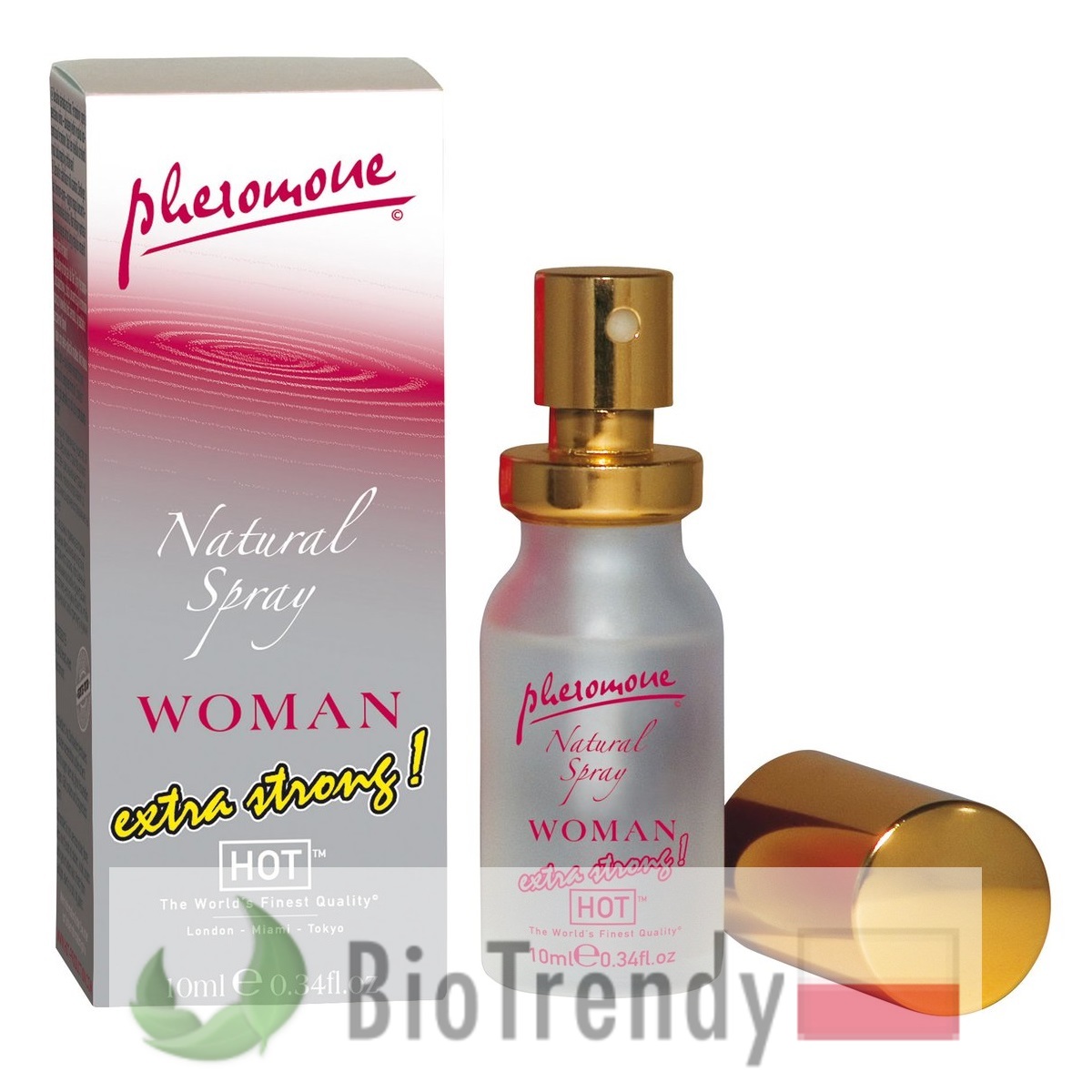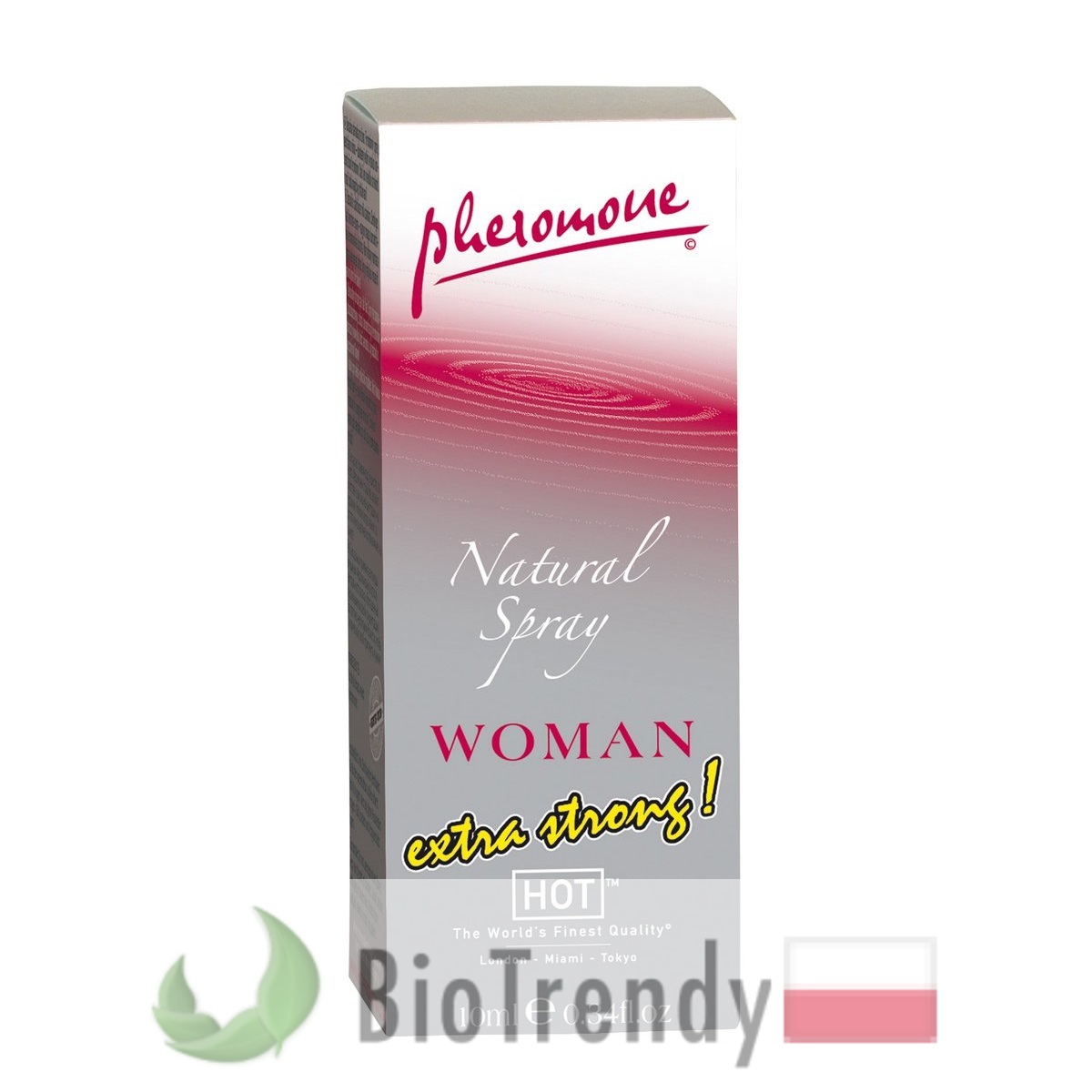 Hot Pheromon Natural Spray Extra Strong Woman to damskie perfumy zawierające feromony – niewyczuwalne dla człowieka substancje, wpływające pozytywnie na wizerunek kobiety wśród osób przebywających w jej bezpośrednim otoczeniu. Dzięki działaniu feromonów staje się ona bardziej atrakcyjna szczególnie w kontaktach damsko-męskich, budząc większe zainteresowanie, przyciągając emanującym z niej seksapilem, a także pewnością siebie i zdecydowaniem.