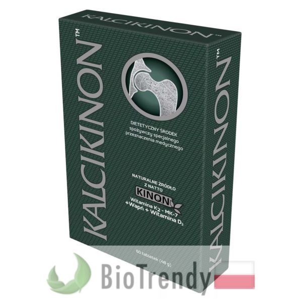 Kalcikinon to suplement diety w postaci tabletek, który oparty jest wyłącznie o naturalne składniki odżywcze, takie jak: Witamina D3 (Cholekalcyferol: Cholecalciferolum), Witamina K2 (Menachinon) oraz Wapń (Ca: Calcium).