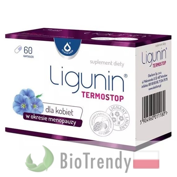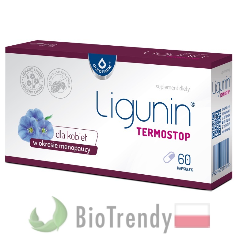 Ligunin Termostop to suplement diety w postaci kapsułek, który oparty jest wyłącznie o naturalne składniki odżywcze, takie jak: Chmiel zwyczajny (Humulus lupulus) oraz Len zwyczajny (Słowień: Linum usitatissimum).