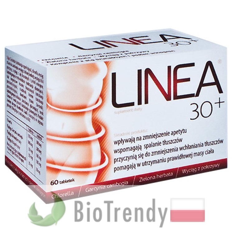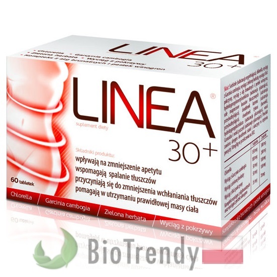 Linea 30+ to suplement diety w postaci tabletek, który oparty jest wyłącznie o naturalne składniki odżywcze, takie jak: Workoliść członowaty (Alga brunatna: Ascophyllum nodosum), Winorośl właściwa (Winorośl winna: Vitis vinifera), Tamaryndowiec malabarski (Garcinia cambogia: Garcinia gummi-gutta), Chlorella zwyczajna (Chlorella vulgaris), Zielona herbata (Herbata chińska: Camellia sinensis) oraz Pokrzywa zwyczajna (Urtica dioica).