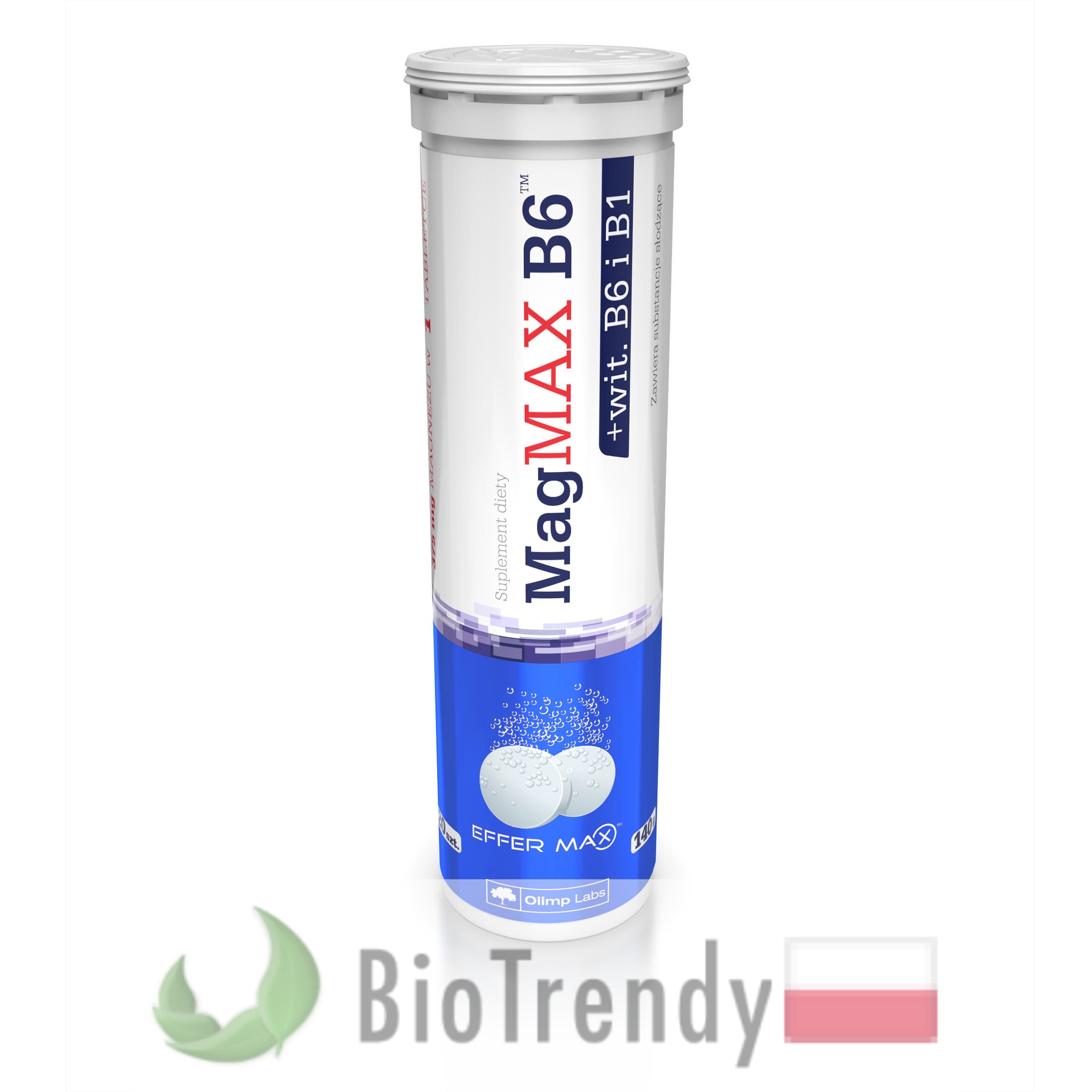 MagMAX B6 to suplement diety w postaci tabletek musujących, który oparty jest wyłącznie o naturalne składniki odżywcze, takie jak: Witamina B1 (Tiamina: Aneuryna), Witamina B6 (PN: Pirydoksyna) oraz Magnez (Mg: Magnesium).