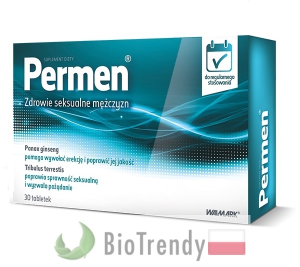Spadek sprawności seksualnej może wiązać się ze złą, dietą, stresem, brakiem ruchu oraz wiekiem. Permen to preparat, który dzięki odpowiednio dobranym, naturalnym składnikom wspiera sprawność seksualną u mężczyzn. Wspomaga erekcję i podnosi poziom libido, intensyfikuje doznania płynące ze współżycia. Podnosi także poziom testosteronu we krwi oraz korzystnie wpływa na proces powstawania i dojrzewania plemników. Permen przyczynia się także do szybszej regeneracji organizmu po wysiłku, utrzymuje dobrą sprawność fizyczną oraz zwiększa siłę i masę mięśni. Korzystnie wpływa na pracę serca.