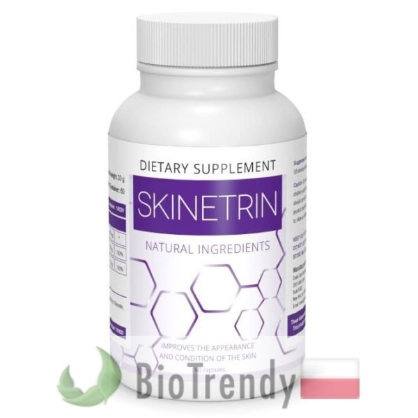 Skinetrin to suplement diety w postaci kapsułek, który oparty jest wyłącznie o naturalne składniki odżywcze, takie jak: Hydrolizat kolagenu (Żelatyna: Hydrolyzed collage), Witamina B3 (PP: Niacyna, Kwas nikotynowy) oraz Witamina C (E300: Kwas askorbinowy).
