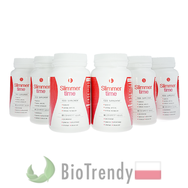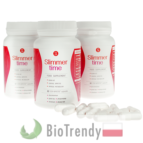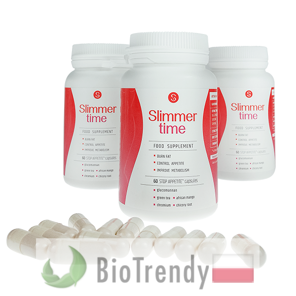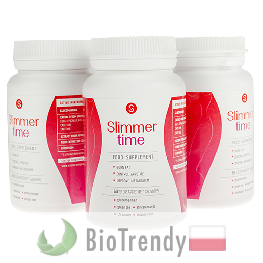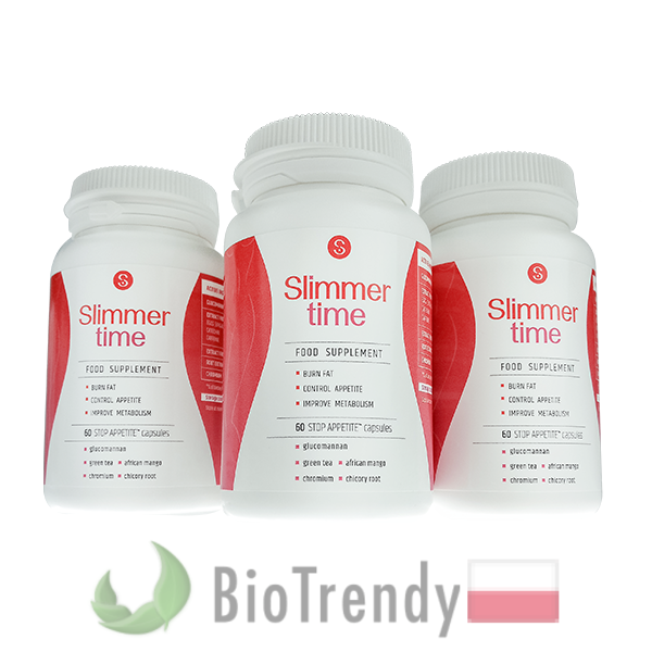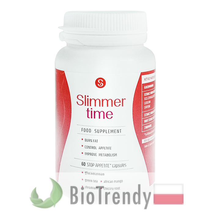 SlimmerTime to suplement diety w postaci kapsułek, który oparty jest wyłącznie o naturalne składniki odżywcze, takie jak: Dziwidło Riviera (Konjak: Amorphophallus konjac), Zielona herbata (Herbata chińska: Camellia sinensis), Afrykańskie mango (Dzikie mango: Irvingia gabonensis), Cykoria sałatowa (Radicchio: Cichorium intybus) oraz Chrom (Cr: Chromium).