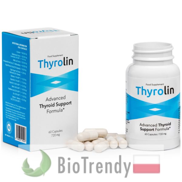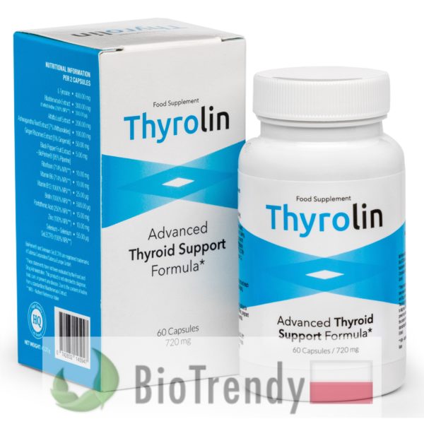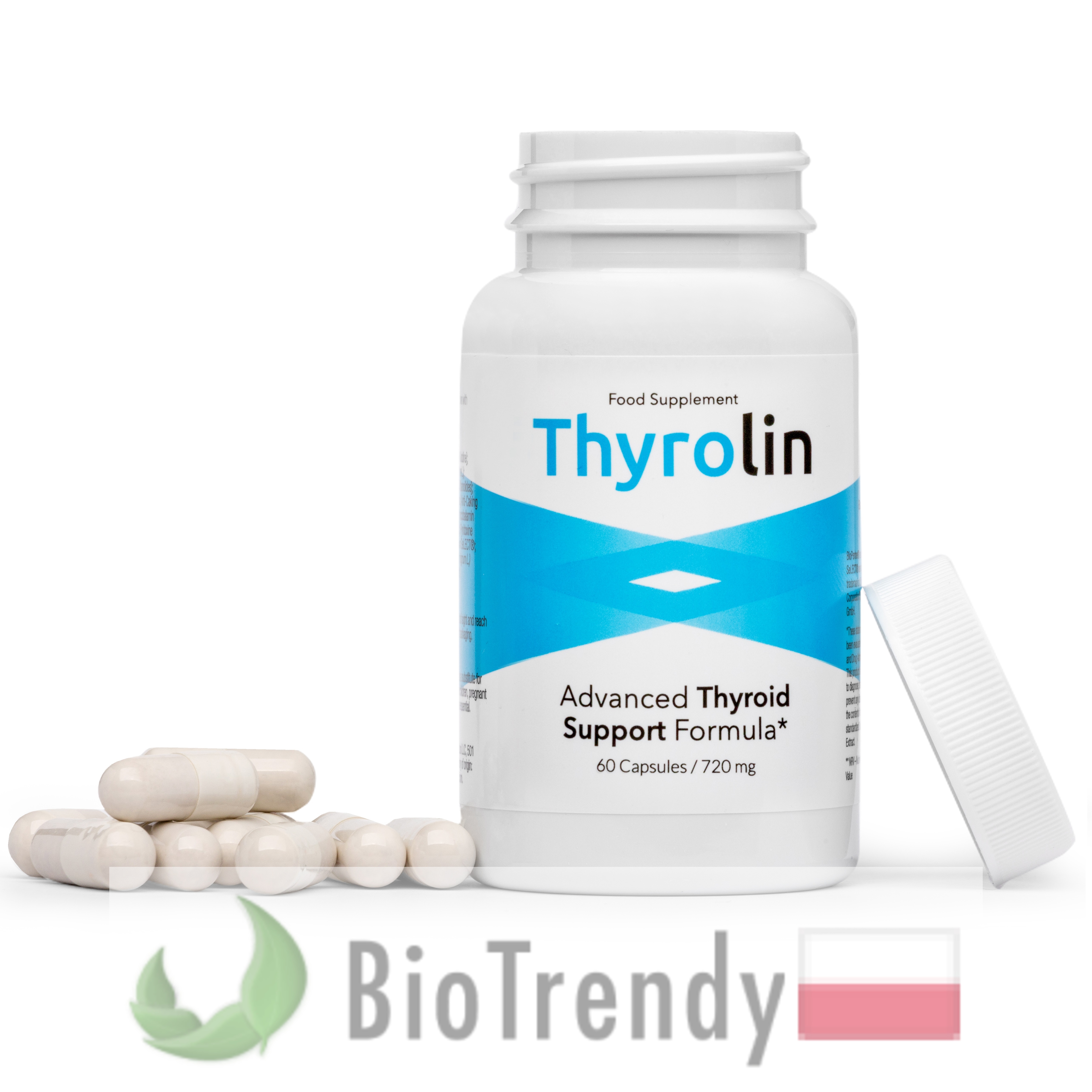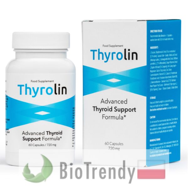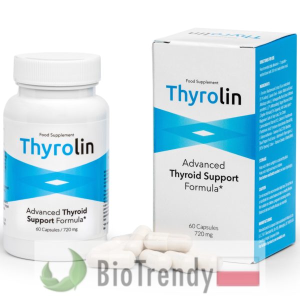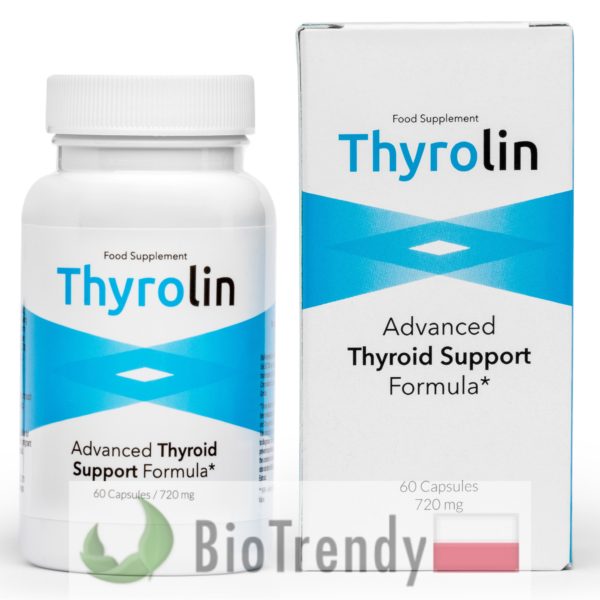 Thyrolin to suplement diety w postaci kapsułek, który oparty jest wyłącznie o naturalne składniki odżywcze, takie jak: L-tyrozyna (Tyr: Kwas (2S)-2-amino-3-(4-hydroksyfenylo)propanowy), Morszczyn pęcherzykowaty (Fucus vesiculosus), Lucerna siewna (Alfalfa: Medicago sativa), Witania ospała (Ashwagandha: Withania somnifera), Imbir lekarski (Zingiber officinale), Pieprz czarny (Piper nigrum), Witamina B2 (Ryboflawina: Riboflavinum), Witamina B5 (Kwas pantotenowy), Witamina B6 (PN: Pirydoksyna), Witamina B7 (Witamina H: Biotyna), Witamina B12 (Kobalamina), Cynk (Zn: Zincum) oraz Selen (Se: Selenium).