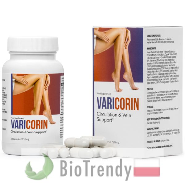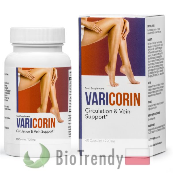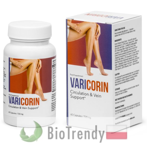 Varicorin to suplement diety w postaci kapsułek, który oparty jest wyłącznie o naturalne składniki odżywcze, takie jak: Kasztanowiec zwyczajny (Kasztanowiec biały: Aesculus hippocastanum), Wąkrota azjatycka (Gotu kola: Centella asiatica), Myszopłoch kolczasty (Ruszczyk kolczasty: Ruscus aculeatus), Hesperydyna (7-O-rutynozyd hesperetyny), Gryka zwyczajna (Fagopyrum esculentum), Winorośl właściwa (Winorośl winna: Vitis vinifera), Oczar wirginijski (Hamamelis virginiana), Pokrzywa zwyczajna (Urtica dioica) oraz Pieprz czarny (Piper nigrum).