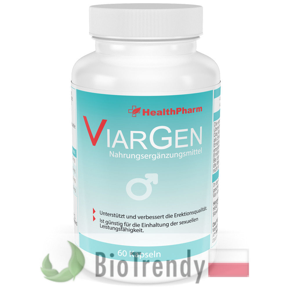 Viargen to suplement diety w postaci kapsułek, który oparty jest wyłącznie o naturalne składniki odżywcze, takie jak: Żeń-szeń właściwy (Żeń-szeń chiński: Panax ginseng), Pieprzyca peruwiańska (Maca: Lepidium meyenii), Buzdyganek naziemny (Tribulus terrestris) oraz L-arginina (Arg: Kwas 2-amino-5-guanidynopentanowy).