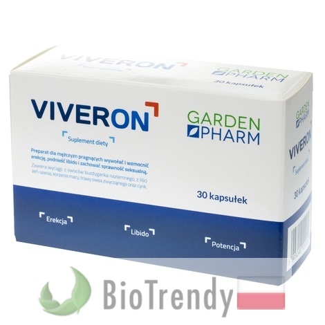 Viveron to suplement diety stworzony dla mężczyzn z problemami erekcji. Suplement pomaga wywołać, wzmocnić i utrzymać erekcję, podnosi poziom libido oraz pozwala zachować witalność oraz sprawność seksualną. Wpływa korzystnie na płodność, wspomagając prawidłową pracę układu rozrodczego i utrzymując odpowiedni poziom testosteronu we krwi. Viveron reguluje także gospodarkę hormonalną organizmu, wspiera prawidłowe funkcjonowanie układu odpornościowego, usuwa uczucie zmęczenia i znużenia. Wykazuje również działanie antyoksydacyjne.